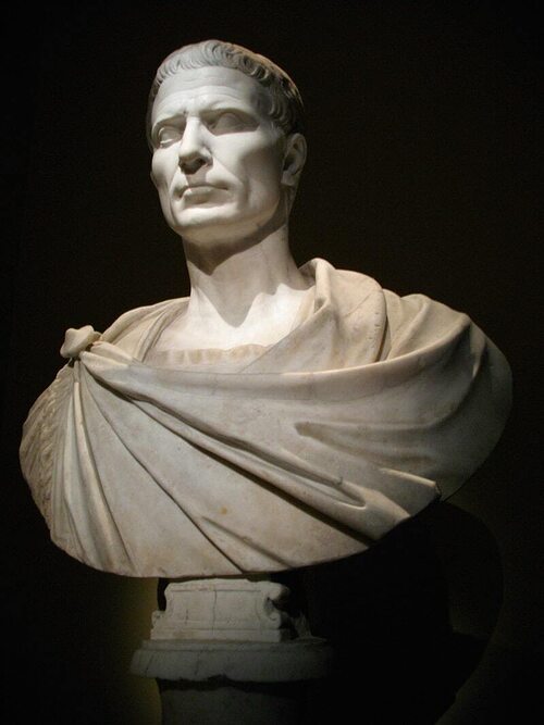 Гай Юлий Цезарь (100-44 гг. до н.э.) древнеримский государственный и политический деятель, полководец, писатель. Консул 59, 48, 46, 45 и 44 гг. до н. э., диктатор 49, 48-47 и 46-44 гг. до н.э., великий понтифик с 63 г. до н.э.