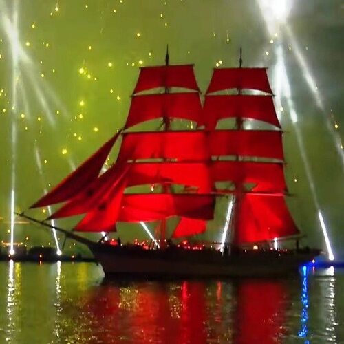 "Алые паруса" в 2024 году проводятся 28 июня Ежегодно в Санкт-Петербурге во время белых ночей отмечается Праздник выпускников "Алые паруса". Молодые люди, которые покидают стены школ Северной столицы и уходят во взрослую жизнь, приходят на Дворцовую площадь, чтобы принять участие в грандиозном шоу, проходящем на открытой воде. ИСТОРИЯ ПРАЗДНИКА "АЛЫЕ ПАРУСА" Впервые выпускники Ленинграда отметили окончание учебы в школе в акватории Невы в июне 1968 г. Тогда "Алые паруса" посетили около 25 000 юношей и девушек, среди которых были и курсанты Суворовского и Нахимовского училищ. Торжественное мероприятие открывала эскадра катеров, на одном из которых, находились юноша и девушка с горящими факелами. Они зажигали Ростральные колонны. Центром праздника и композиции стала шхуна "Металлист", которая шла под алыми парусами - символом перемен, сбывающихся надежд и веры в чудо. Спустя год ее роль исполнила каравелла "Мечта". РЕКЛАМА Это интересно: Прототипом судна с алыми парусами является трехмачтовый галиот "Секрет". Именно его увидела с берегов Каперны Ассоль - героиня повести-феерии А. Грина. По образу и подобию "Секрета" воссоздавались суда для ленинградских, а потом и петербургских школьников. Родственники и друзья выпускников, другие жители Ленинграда, которые пришли посмотреть на торжественное мероприятие, размещались на стрелке Васильевского острова и Дворцовой набережной. Праздник проходил под композицию "Гимн великому городу" Р. Гриэра. Она, как и алые паруса, впоследствии стала символом тождественного мероприятия. Кроме музыки Глиэра, на празднике звучали увертюры к "Детям капитана Гранта", вариации на морские темы И. Дунаевского и оратория Шостаковича "Песнь о лесах". За 10 лет существования "Алых парусов" неоднократно менялись центральные шхуны и музыкальное сопровождение. Так, в 1970 г. красные полотна развевались на реях "Кодора" - корабля, который снимали в фильмах "В поисках капитана Гранта", "Остров сокровищ" и др. В 1979 г. праздник на Неве для выпускников школ и военных училищ проводить прекратили. "АЛЫЕ ПАРУСА" МНОГО ЛЕТ СПУСТЯ Свое второе дыхание праздник получил в 2005 г., когда был возрожден по инициативе правительства Санкт-Петербурга, "Пятого канала", банка "Россия" и других спонсоров. Поддержку мероприятию оказал и знаменитый Цирк дю Солей. Торжество начинается с концерта кумиров молодежи на Дворцовой площади и продолжается ближе к полуночи пиротехническим шоу. Под гром салютов и музыку в акваторию "Невы" выплывает корабль с алыми парусами. В 2019 г. специально для праздника был приобретен бриг "Россия" длиной 900 м, который развивает скорость хода до 16 узлов. До этого алые паруса полыхали на фрегате "Штандарт", корабле "Мир", "Юном балтийце" и бриге "Три колонны". Это интересно: "Алые паруса" установили собственный рекорд в 2010 г., когда мероприятие посетило более 3,5 млн. человек. В 2007 г. их количество равнялось 1 млн. Основная аудитория праздника - выпускники школ и их гости, которые приходят на него по пригласительным билетам. На торжество также приглашают выпускников из других городов и зарубежных гостей. Белые ночи и шоу на Неве с салютом и другими пиротехническими спецэффектами, проходящие под классическую музыку, пользуются большой полярностью у туристов. Праздник не зря считается одним из лучших водных представлений под открытым небом.