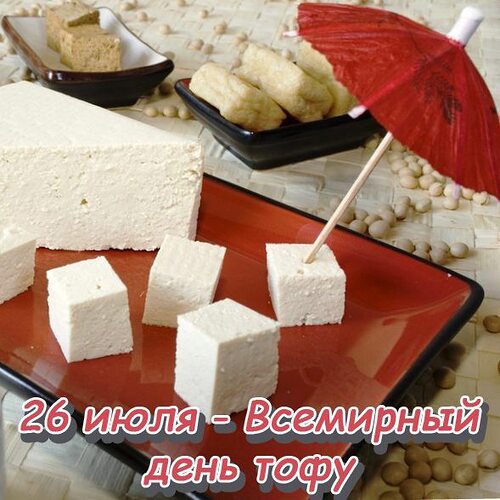 Соевые бобы используются для приготовления молока, соусов и мяса для вегетарианцев и людней, не переносящих лактозу. Семена растения богаты витаминами и незаменимыми аминокислотами, минералами и растительным белком, содержат большое количество изофлавонидов (фитоэстрагенов). Поэтому сыр и другие молочные продукты из сои рекомендуются употреблять женщинам перед наступлением "золотого возраста" и для профилактики рака молочной железы. Тофу полезен и для мужчин: он снижает риски заболеваний сердца и уровень холестерина в крови. Из широко известного сыра готовят закуски и десерты, салаты, первые и вторые блюда. Слово "тофу" пришло в английский, а позже было заимствовано другими языками, из Японии в конце XVIII в. В США и Канаде продукт, приготовленный методом коагуляции соевого молока, называется "творог из бобов". В честь сыра растительного происхождения, без которого сложно представить себе южно- и восточно-азиатскую кухни, учрежден праздник. 26 июля отмечается Всемирный день тофу. Впервые World Tofu Day прошел в 2014 г. Инициатором проведения торжественных мероприятий стало Общество защиты животных из Канады. Целью праздника стало желание обратить внимание общества на продукт растительного происхождения как отличную альтернативу мясу. В первый год во Всемирном дне тофу, проходящем в Монреале, участвовало более 12 000 человек. Центральным мероприятием праздника стало барбекю приготовление на открытом огне гигантской порции соевого мяса. Веганские пикники, в которых принимают участие люди из разных стран мира, считаются главной традицией проведения World Tofu Day. Сыр популярен у кулинаров благодаря своей губчатой структуре и нейтральному вкусу. Это позволяет веганам и вегетарианцам готовить из него различные блюда, сделав максимально сбалансированным свой рацион питания. Диеты из растительных продуктов придерживаются Мадонна, Дженифер Лопес, Брайен Адамс, Майли Сайрус, Натали Портман, Ариана Гранде и Бенедикт Камбербэтч. Рокер Джаред Лето, солист группы Thirty Seconds to Mars, как-то пошутил в интервью: "Было время, когда мы приносили в жертву коз. Но позже прониклись веганством и теперь перед концертами приносим в жертву тофу!" Соевый сыр появился в Китае более 2 тыс. лет назад. Оттуда он попал в Японию, в которой его назвали "бобовая закваска". Дальше рецепт приготовления сыра распространился по всей Азии. Сегодня тофу широко востребован бирманской, корейской, тайской, китайской, индонезийской и японской кухнями. В Америке о нем узнали благодаря Бенджамину Франклину. Вернувшийся из поездки в Лондон в 1770 г. шестой президент США упомянул в своем письме "сыр из Китая" и технологию его производства. Всемирный день тофу отличный способ открыть для себя новые вкусы и выработать полезные привычки. В честь праздника ценители сыра идут в рестораны, где заказывают блюда из "бобового творога", либо ставят эксперименты у себя на кухнях. Популяризации этого полезного продукта питания способствует размещение постов в социальных сетях с хештегом WorldTofuDay.