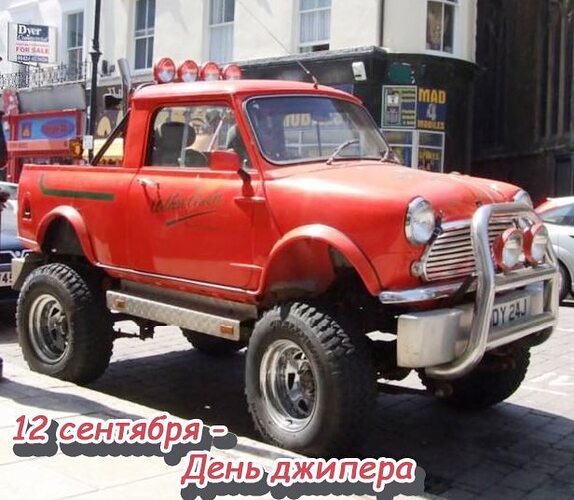 Благодарю. Да, сегодня мой праздник. Первый внедорожник мне подарила моя бывшая. Помню она тогда работала без выходных, жила в цеху как спартанец. Писала на улице и мылась в тазике, но никогда не скулила.