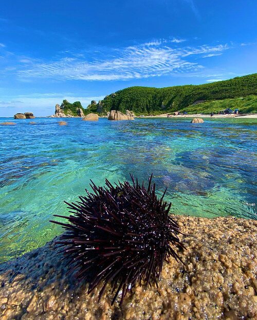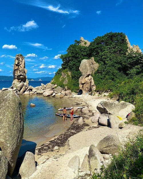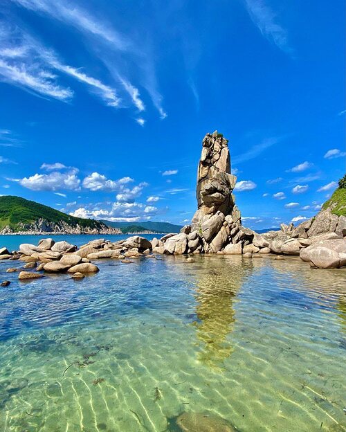 Визитная карточка бухты Ежовая — кекур Самурай, возвышающийся в её южной части. В водах бухты встречаются морские ежи, мидии и гребешок, а у самого берега снуют стайки рыбок. Здесь у вас точно получатся отличные снимки и отдых!