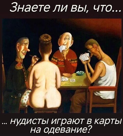Ни разу не видела,чтоб нудисты в карты играли! Как будто им заняться больше нечем!?