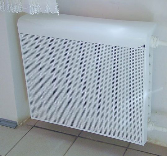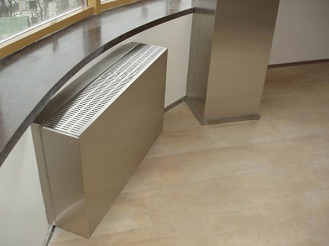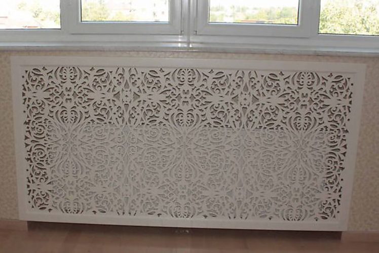 Экраны чаще всего железные. Они очень легкие по весу, не требуют сложной установки. Подобрать навесной экран можно практически под любой вариант батареи. Навес позволяет если не полностью скрыть батарею отопления, то немного облагородить ее вид. Такой вариант подойдет, если не хочется вкладывать средства в более серьезные переделки.