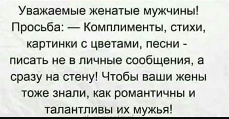 У автора отрицательное отношение к женатым. Но если уйдут с сайта все женатые то соотношение мужчин к женщинам станет 2 к 10