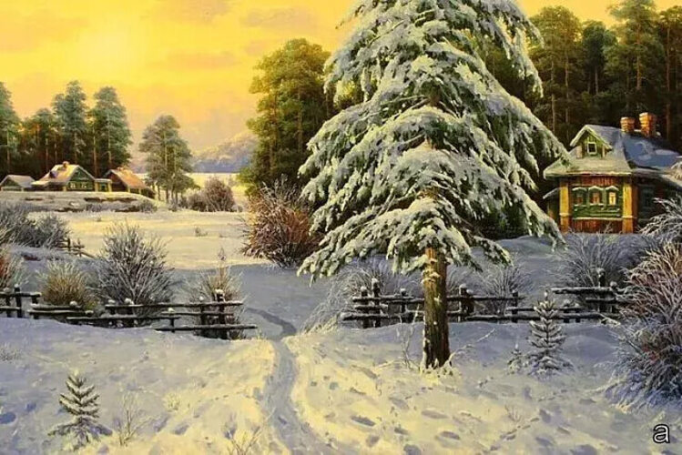 Прошло часа два. Вернулся Григорий. Идёт по селу и пихту тянет пушистую такую. Сам уже взопрел, запыхался, а деревце держит, да еще топор за поясом. Так и пришёл к своему бревенчатому дому, который много лет назад с отцом строил. А след от пихты так и тянется, видно нести её уже сил не было, пришлось волоком по снегу.