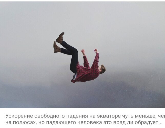 С детства мы привыкли к тому, что все тела притягиваются к центру Земли и падают на её поверхность, если им не мешает какая-то сила. И падают они с одинаковым ускорением, которое не зависит от массы тел — эту простую истину доказали ещё XVII веке. Его называют ускорением свободного падения и обозначают буквой g. Но в книжках по подготовке к ЕГЭ не пишут, что величина ускорения свободного падения не всегда равна 9,8 метров на секунду в квадрате. А жаль, ведь это очень интересная особенность параметра, который современные учителя почему-то называют постоянным.