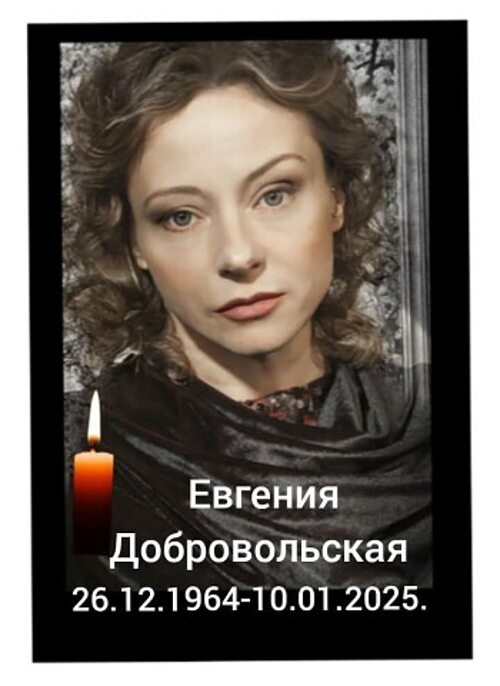Возраст: 60 (со дня рождения) Возраст смерти: 60 лет Евгения Добровольская рано стала взрослой и ответственной, начала сама распоряжаться своей судьбой. Перед тем, как начать блистать на театральной сцене, Евгении приходилось мыть ее половой тряпкой. Счастливый случай позволил ей успешно дебютировать на экране в фильме Клетка для канареек. Звездой ее сделала роль Маргариты Валуа в популярном сериале Королева Марго... ФОТО Евгения Владимировна Добровольская. Родилась 26 декабря 1964 года в Москве - умерла 10 января 2025 года в Москве. Советская и российская актриса театра и кино. Народная артистка Российской Федерации (2005). Евгения Добровольская родилась 26 декабря 1964 года в Москве. Отец - Владимир Ильич Добровольский. Мать - Галина Витальевна. Они работали на руководящих должностях. Евгения - поздний ребенок, поэтому родители ее очень любили, хотя и не могли из-за работы уделять много времени. Евгения в своих интервью говорила о том, что слишком рано встала взрослой и ответственной. Родители все время проводили на работе, поэтому ребенок был предоставлен сам себе. С малых лет Добровольская сама распоряжалась своей жизнью. С ранних лет занималась балетом, обучалась под руководством известной балерины Татьяны Постниковой и уже в 6 лет дебютировала на сцене в постановке Бременские музыканты. В школьные годы посещала различные кружки и секции, занималась спортом, танцами. В старших классах стала посещать театр-студию на Красной Пресне под руководством Вячеслава Спесивцева. Евгения с ранних лет точно знала, что хочет стать артисткой, и, как она говорила, всегда "четко представляла, в каком направлении двигаться". После школы она поступала в ГИТИС и в ЛГИТМиК, но не прошла. Как говорила Евгения, из-за собственной глупости. В то время, по ее словам, она была "экспрессивной, наглой и мерзкой девицей": "К примеру, могла спросить у известного актера, сидящего в приемной комиссии: А вы-то сами кто, что позволяете себе судить об актерском мастерстве?!". Евгения Добровольская в кино Провалив экзамены, она устроилась в Театр Моссовета уборщицей. И в том же году ей повезло: снялась в главной роли в фильме Клетка для канареек, который сразу сделал ее знаменитой. За свою дебютную кинороль Олеси в фильме Клетка для канареек в 1985 году она получила приз за лучшую женскую роль международного кинофестиваля молодых кинематографистов соцстран (Кошалин, Польша). После удачного кинодебюта, смогла поступить в ГИТИС. Евгения Добровольская в фильме "Клетка для канареек" В 1987 году окончила ГИТИС, курс Людмилы Касаткиной и Сергея Колосова. Далее была принята в МХАТ имени М. Горького. В 1988-1989 - актриса Театра-студии под руководством Олега Табакова. В 1989-1991 - актриса театра-студии Современник-2, созданной на базе выпускного курса Школы-студии МХАТ под руководством Михаила Ефремова. С 1991 - актриса МХАТ им. А. П. Чехова. Театральные работы Евгении Добровольской: Игры женщин - Милена Чайка А. Чехова - Нина Заречная Кабала святош - Арманда Бежар Урок женам - Агнесса Урок мужьям - Изабелла Борис Годунов - Марина Мнишек Злодейка, или Крик дельфина - Катя Горе от ума - Софья / Лиза Привидения - Регина Энгстран Мишин юбилей - Лида Амадей - Констанция Вебер Пьемонтский зверь - сестра Иоанна Священный огонь - сиделка Уэйленд Немного нежности - Диана Ю - Сестра Господа Головлевы - Аннинька Гримерная - А