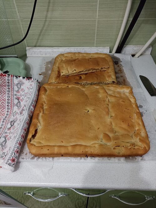 Сегодня испекла пироги, а начинка грузди, капуста с грузьдями, и ещё один пирог с мясом,но очень вкусные. ?