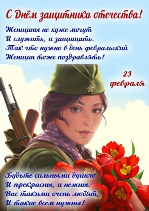 Присоединяюсь к поздравлениям не только мужчин, но и женщин, которые связали свою жизнь с такой профессией (военнообязанные)!!! С праздником вас!!!