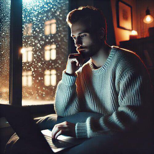 Когда снег ложился мягким покрывалом на улицы, а в окнах светились уютные огоньки, он ощущал себя особенно потерянным. Всё вокруг дышало теплом, любовью а он был лишь случайным прохожим в чужом счастье.