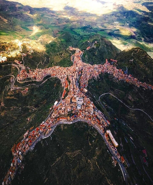 На Сицилии есть город Чентурипе. Если снимать с помощью аэрофотосъемки, то хорошо заметно, что город имеет форму человека.