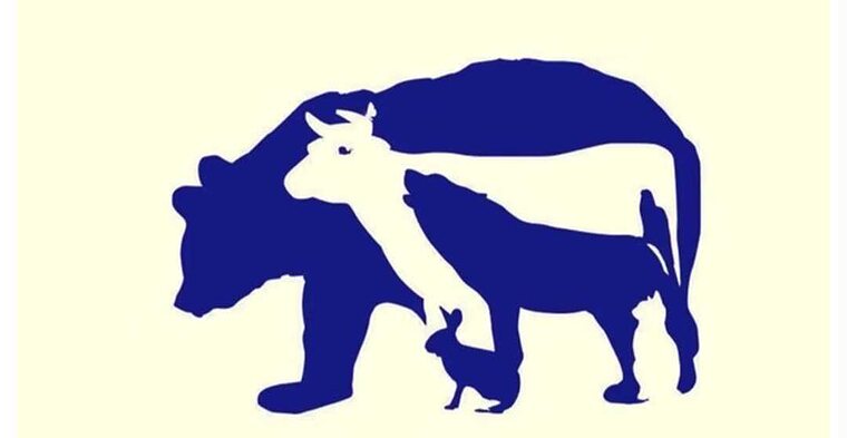 Медведь, корова, волк, кошка, птичка, заяц, мышка, бабочка, улитка +дурак, который все это помчитал.