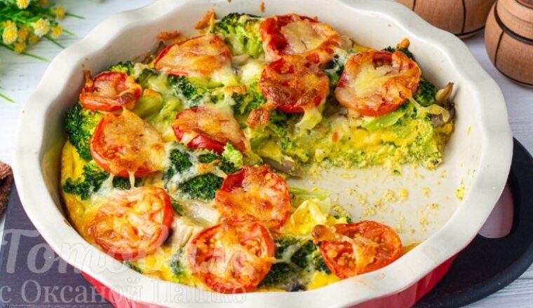 Мясная запеканка с брокколи и грибами