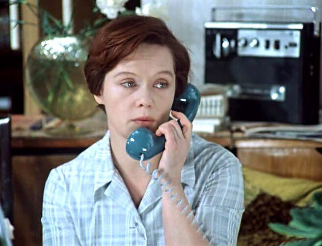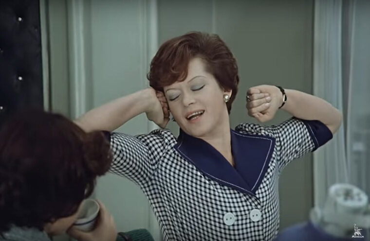И здесь я хочу немного поразмышлять. Если смотреть фильм внимательно, то нетрудно заметить, что дома, когда Людмила Прокофьевна одна, когда ее никто не видит, она выглядит куда женственней, чем на рабочем месте: