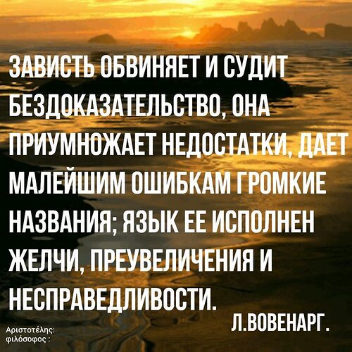 Только зависть обвиняет всех вокруг и обсуждает ,только зависть приумножает и ищет недостатки ,только зависть даёт малейшим ошибкам громкие названия