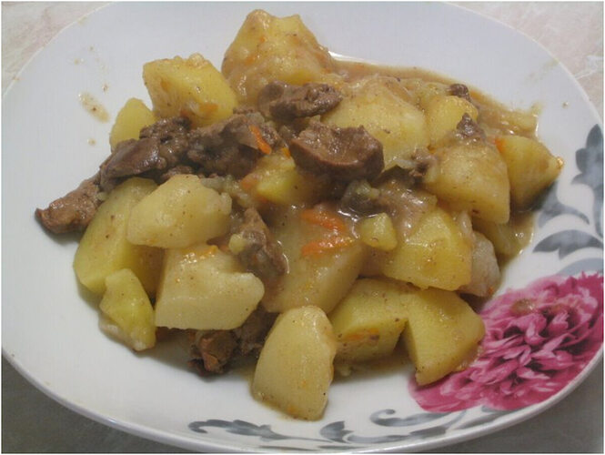 Старые рецепты. Картофель тушёный с печенью и шпиком (белорусская кухня)