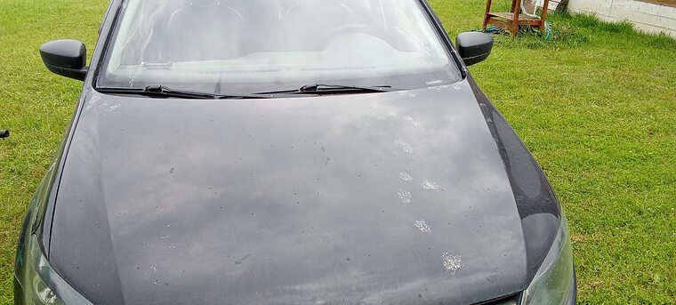 Кошак мне на стекле инициалы свои оставила)