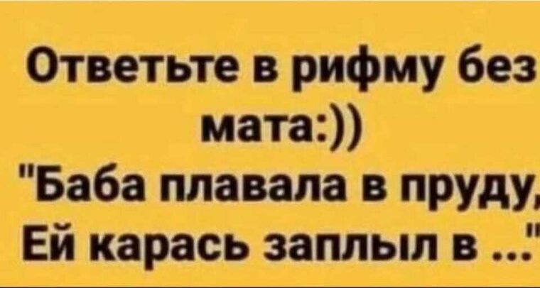 Баба плавала в пруду, ей карась заплыл в косу. Потому как на беду ни одной нет дырочки в голове у дурочки.