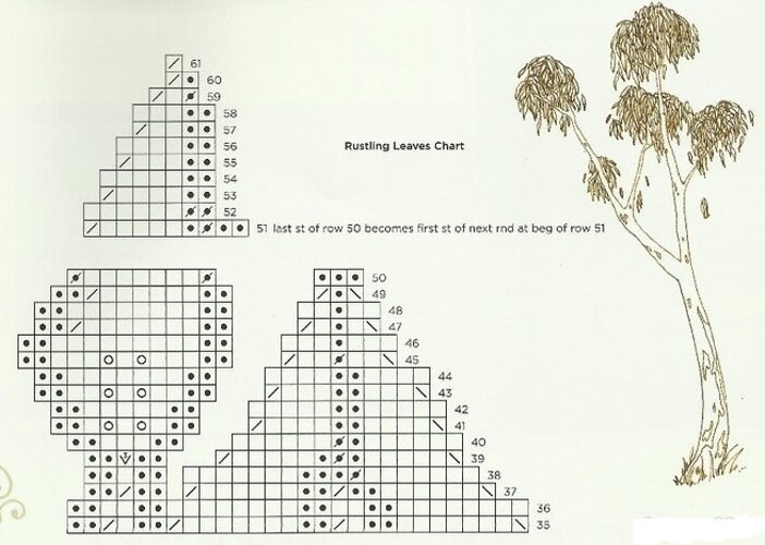 Чтобы убавления на стыке раппортов были неявными, их смещают, провязывая 2 петли вместе не над друг над другом, а смещая маркеры, разделяющие раппорты, на одну петлю дальше