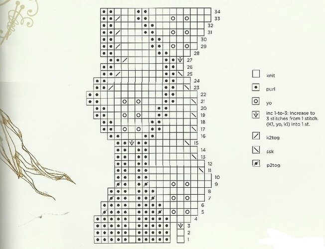 4) галочка с цифрой 3 - из одной лицевой вывязываем 3 петли (лицевая, накид, лицевая)