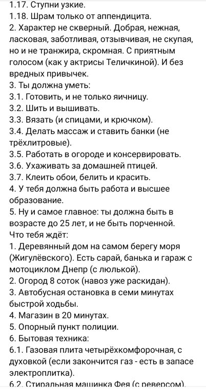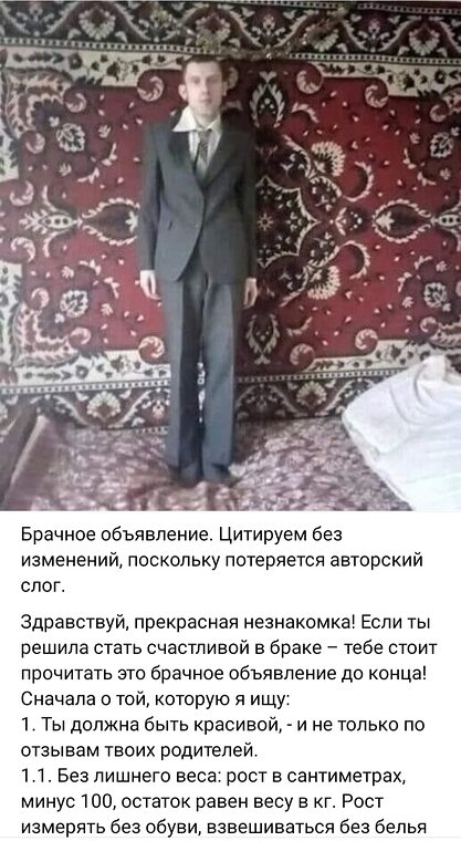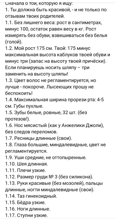 А мне обычно девушки говорят, что это у меня завышенные требования))). Скопирую и буду теперь всем показывать с кем знакомлюсь)))