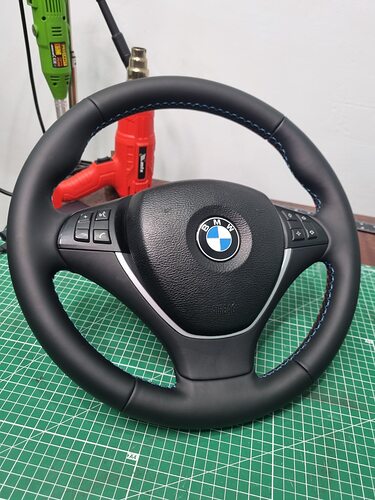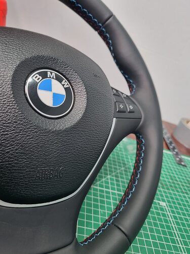 Перетяжка руля BMW x5 E70 в натуральную кожу с М-строчкой