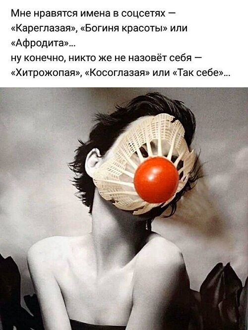 У мужиков тоже весело, недавно видела ник Волчара, заходишь в анкету - там собака сутулая, а по общению просто ***** обыкновенное)