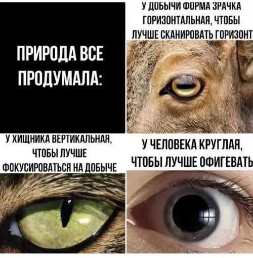 У человека что-бы всевидящим оком оценить и стейк, и салат.)