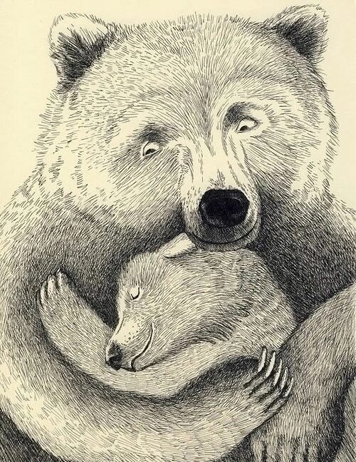 Мать-медведица гладит лапой по косматой башке и плачет.