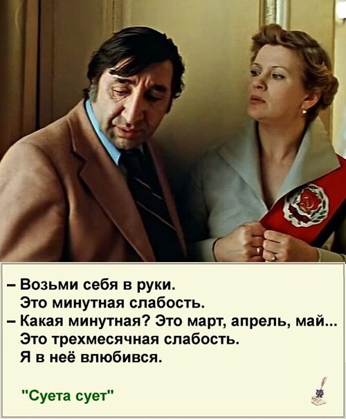- Какая минутная? Это март, апрель, май. Это трёхмесячная слабость! Я в нее влюбився.