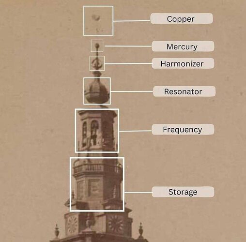 ↑ накопитель, частота, резонатор, гармонизатор, ртуть, медь.
