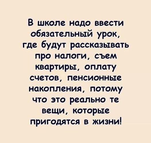 Касательно верхнего поста: такой предмет есть в американских школах. Называется как-то несуразно типа "Основы бытовых знаний".