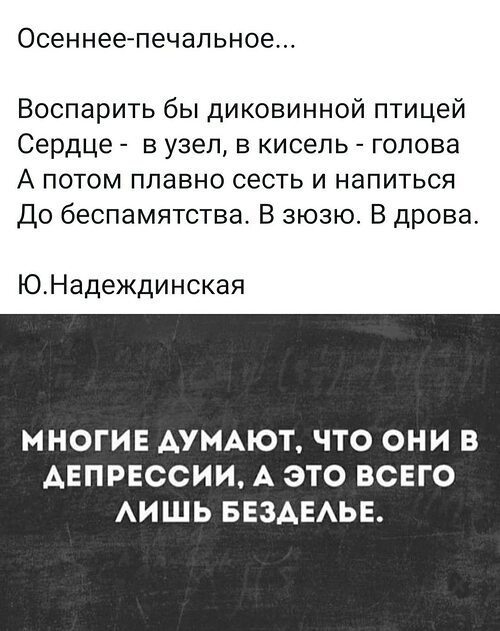 Депрессия, это серьëзное психическое расстройство... Не стоит его путать, с бездельем и ленью... ☝