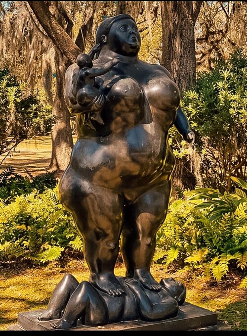 В саду скульптур Новоорлеанского музея искусств установлена одна из самых необычных статуй, посвящённых матери. Автор Фернандо Ботеро изобразил пышную женщину с ребёнком, которая стоит на собственном муже. На первый взгляд скульптурная композиция вызывает отвращение. Но, чем дольше на неё смотришь, тем больше понимаешь, что автор чертовски прав. Он изобразил роль мужчины как опоры семьи, женщины, со временем теряющей внешнюю привлекательность и приоритет ребенка над супругом.