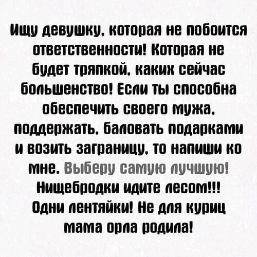 ОБЪЯВЛЕНИЕ ПРИНЦА НА БЕЛОМ КОНЕ ИЛИ БЕЛОЧКЕ, КТО ЗНАЕТ...