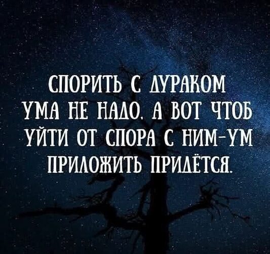 Это точно. Начнёшь спорить с дураком, тогда это уже будет 2 дурака. Кто то же должен быть умнее.