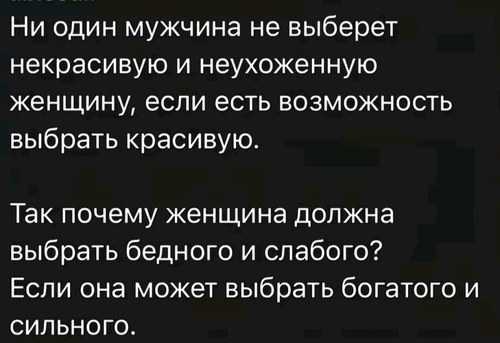 Зачем рисковать и инвестировать своё время и силы в неликвидных и невостребованных мужиков? Нет смысла поддерживать то, что не стоИт само. Мужики не способны ценить, беречь и благодарить за это.