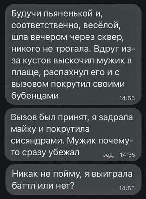 да, выиграла, слабак убежал