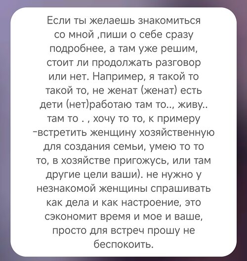 Адекватный посыл. А не вот это вот как дела, как настроение, чем занимаешься и сам не знает кого ищет и чего хочет