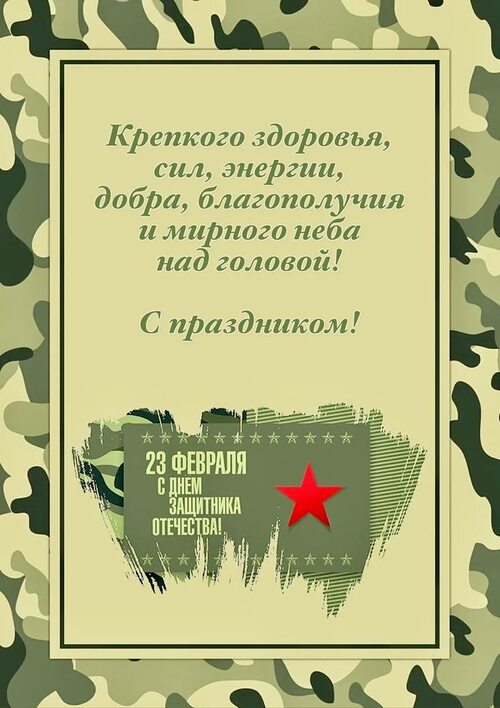 Уважаемые мужчины, поздравляю вас с 23 Февраля! Желаю стабильности, благополучия и уверенности в завтрашнем дне. Оставайтесь такими же сильными и смелыми, верными и надежными, жизнерадостными и оптимистичными, добрыми и щедрыми! Пусть вас ценят и уважают на работе, а дома любят и ждут.