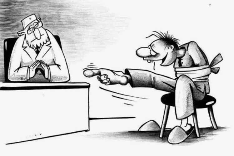 В психиатpической больнице пациента вызывают на собеседование по поводy его выписки.