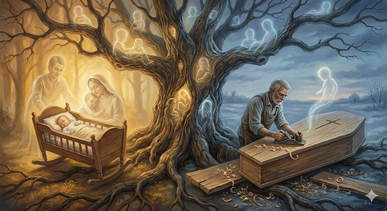 Дерево помнило: в давнем снеБаюкало дитя в тиши.Но мастер явился на заре —И сделал гроб для той души.