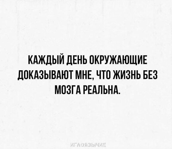 Люди без мозга - самые счастливые! Если хочешь стать счастливой - живи без мозга и ни о чём не думай!