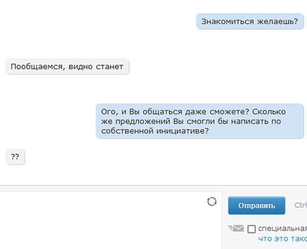 Illjuzija, ((мысль отшлифовалась и стала более понятной и удобоваримой.)) - это уже глобальный контекст, в котором она зрела. А локально - это то, что постулирующие общение дамы, общения дать не смогут. На скрине расписка в этом. Это типичный скрин ситуации.