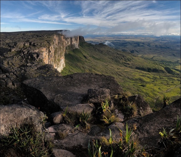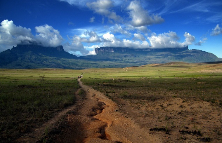 Гора Рорайма - самая известная и по совместительству самая высокая венесуэльская тепуи (столовая гора), достигающая в высоту 2810 метров. Она расположена на стыке Бразилии (штат Рорайма), Венесуэлы (Национальный парк Канайма) и Гайаны (высочайшая точка страны). Площадь поверхности плато "большой сине-зеленой горы", как ее еще называют, составляет 30 кмВІ. Местные индейцы, в свою очередь, именуют ее "пупом земли" и верят, что на самой вершине горы живет богиня Куин - прародительница всех людей. Несмотря на то, что все тепуи - это дома богов, именно Рорайма считается святым местом. Почти всегда она окружена белесыми облаками, придающими ей таинственности, что не может не привлекать сюда искателей приключений и поклонников прекрасного. Долгое время красивейшая гора Южной Америки оставалась неприступной и неизведанной. Только самые смелые индейцы преодолевали сложный путь к заколдованным, по их верованиям, землям, лежащий через практически непроходимые болота и леса.