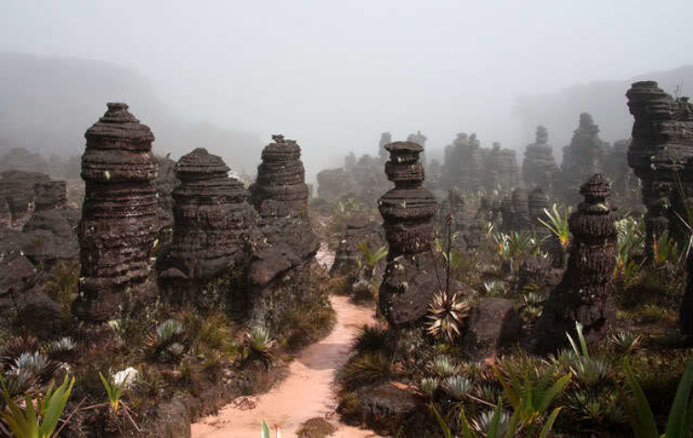 Гора Рорайма имеет еще одну необычную особенность: она притягивает к себе многочисленные молнии, которые практически каждый день поражают поверхность ее вершины и уже очень трудно найти здесь дерево, не пострадавшее от грозовой деятельности. Неземные ландшафты венесуэльских тепуй вдохновляли не только на написание фантастических романов, но и на создание художественных, документальных и даже мультипликационных фильмов.