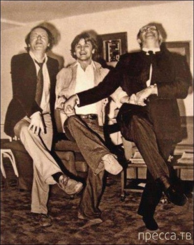 И.Бродский, М. Барышников и М.Ростропович исполняют "танец маленьких лебедей".