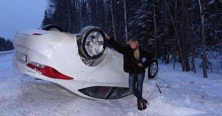 Жена звонит мужу, что попала в аварию. Он приезжает, видит машину лежащую на обочине на крыше, вокруг все, что из нее вывалилось... Интересуется: