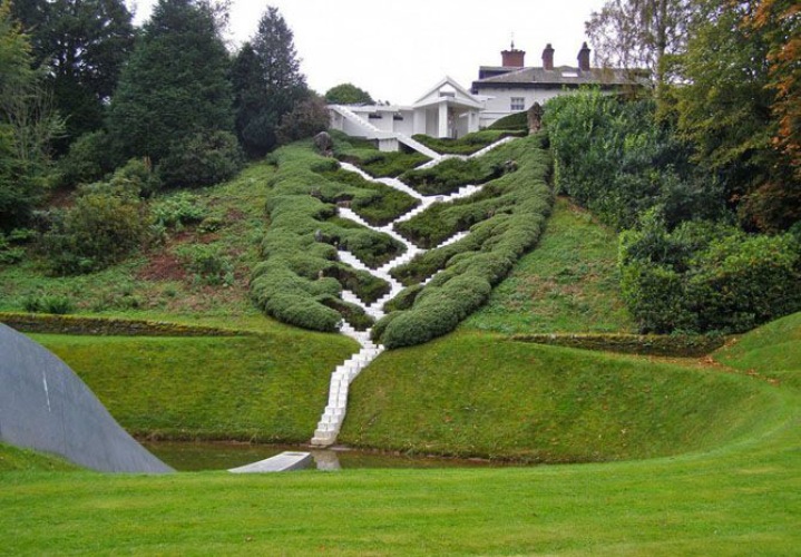 Каскад Вселенной расположен на склоне вдоль садов Дамфрис в Шотландии и состоит из крутой серии ступенек. Большие площадки со смотровыми скамьями были установлены на каждом пролете. Здесь можно просто полюбоваться красотой природы, или отдохнуть во время подъема. Лестница начинается у водоема и ведет к красивому павильону наверху. Хотя сады частные, они открываются общественности один раз в год.