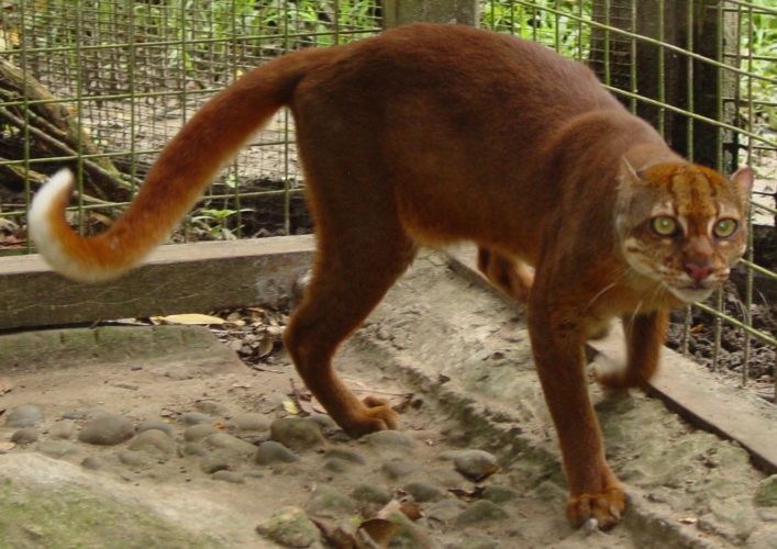 Дикая кошка, обитающая в основном в Индонезии, на основах Суматра и Борнео. Представителей этого вида отличает широкая плоская голова с маленькими, низко посаженными по бокам ушами. Суматранские кошки могут достигать длины 81 см и весят до 3 кг. Питаются они в основном рыбой, лягушками и другими водными животными. Впрочем, иногда могут устраивать набеги на домашнюю птицу. Но самое интересное, что в случае отсутствия животной пищи, суматранские кошки могут разрывать землю в поисках съедобных корешков и питаться даже фруктами.